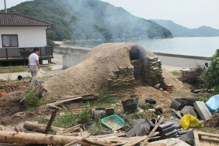 さて昨日、粟島の達磨窯(燻し編)を復活させようと、試し焼きを行いました。